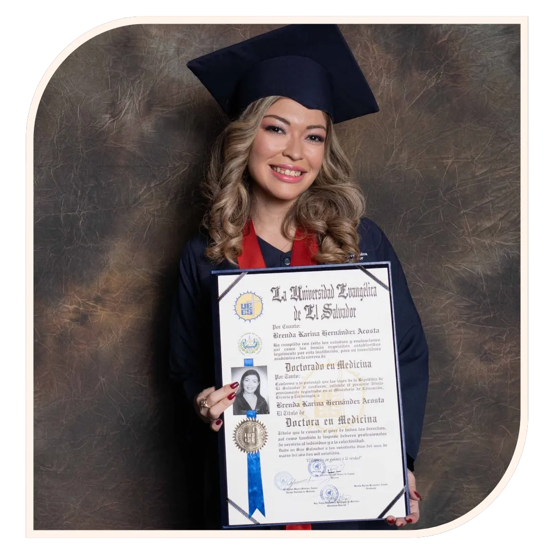 Mi formación médica inició en la Universidad Evangélica de El Salvador, donde estudié Doctorado en Medicina General.